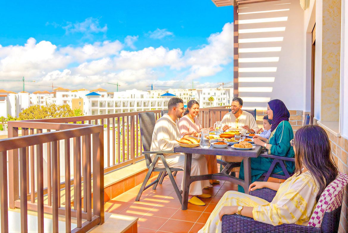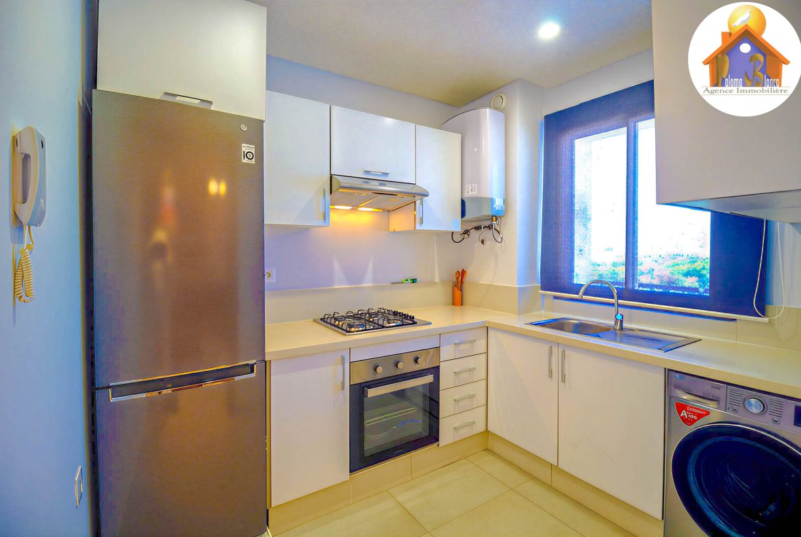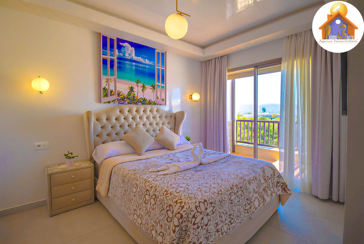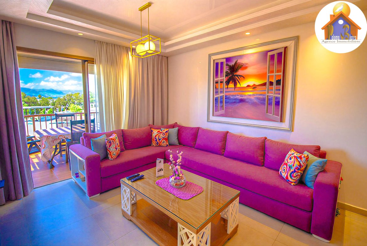 Un appartement bien meublé dans une résidence de Haut – Standing situé à Cabo Negro ( cabo huerto ), il se caractérise par 2 grandes piscines , jeux pour les enfants , animation , parking , sécurité .