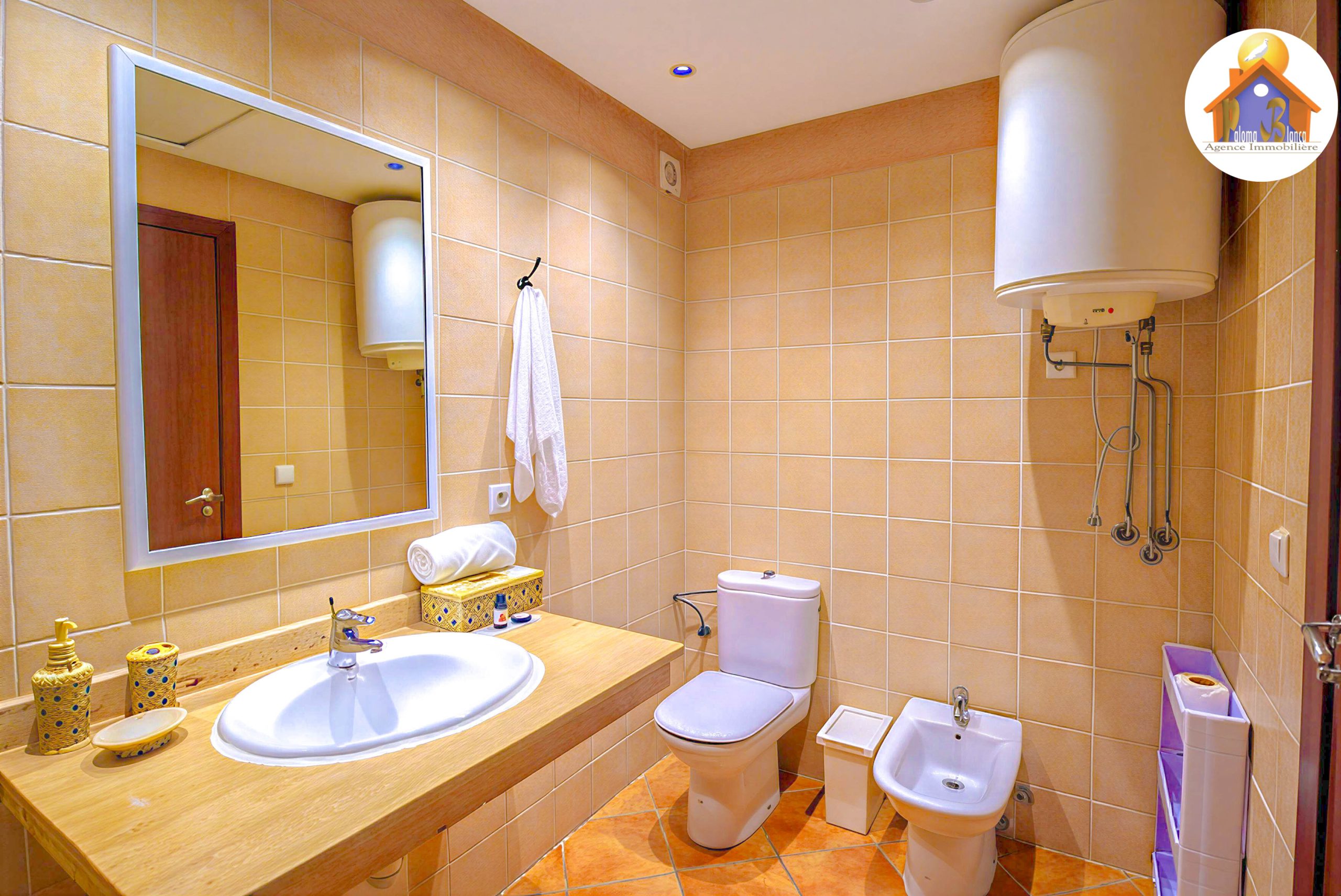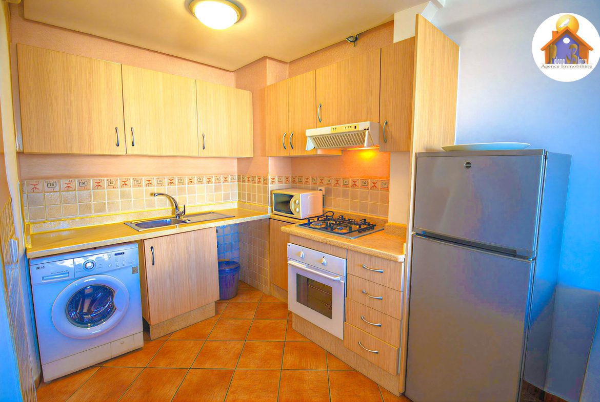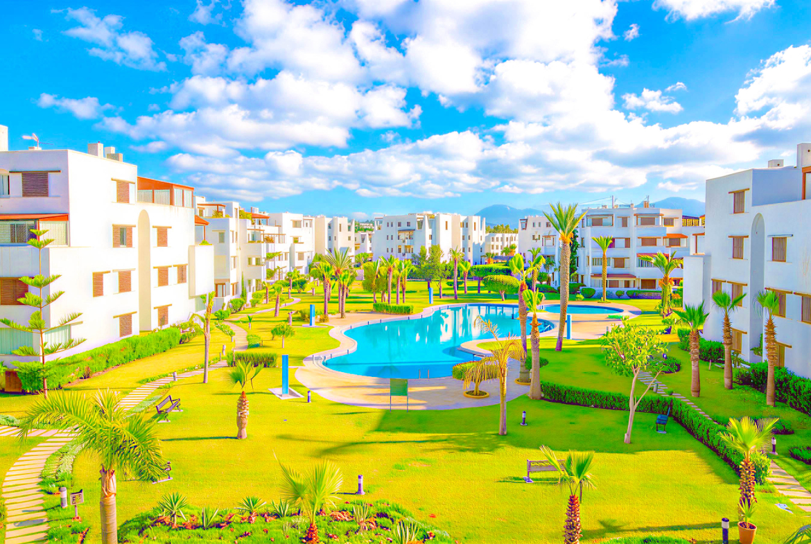 Un appartement chic et bien situé dans un complexe touristique de Haut -Standing à Cabo Negro , le complexe se caractérise par 2 grandes piscines pour les adultes et 2 piscines pour les petits , jeux pour les enfants et animation aussi, il est près d’un centre commercial qui contient : café , restaurant , pharmacie , banque , super marché , parking , sécurité et Wi-Fi.