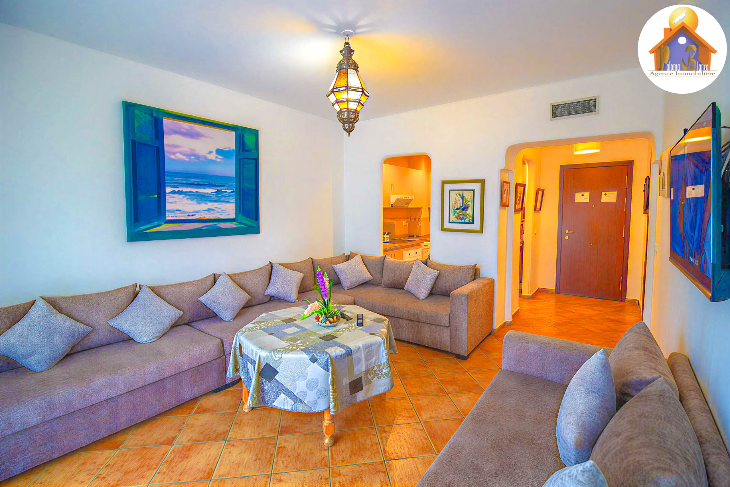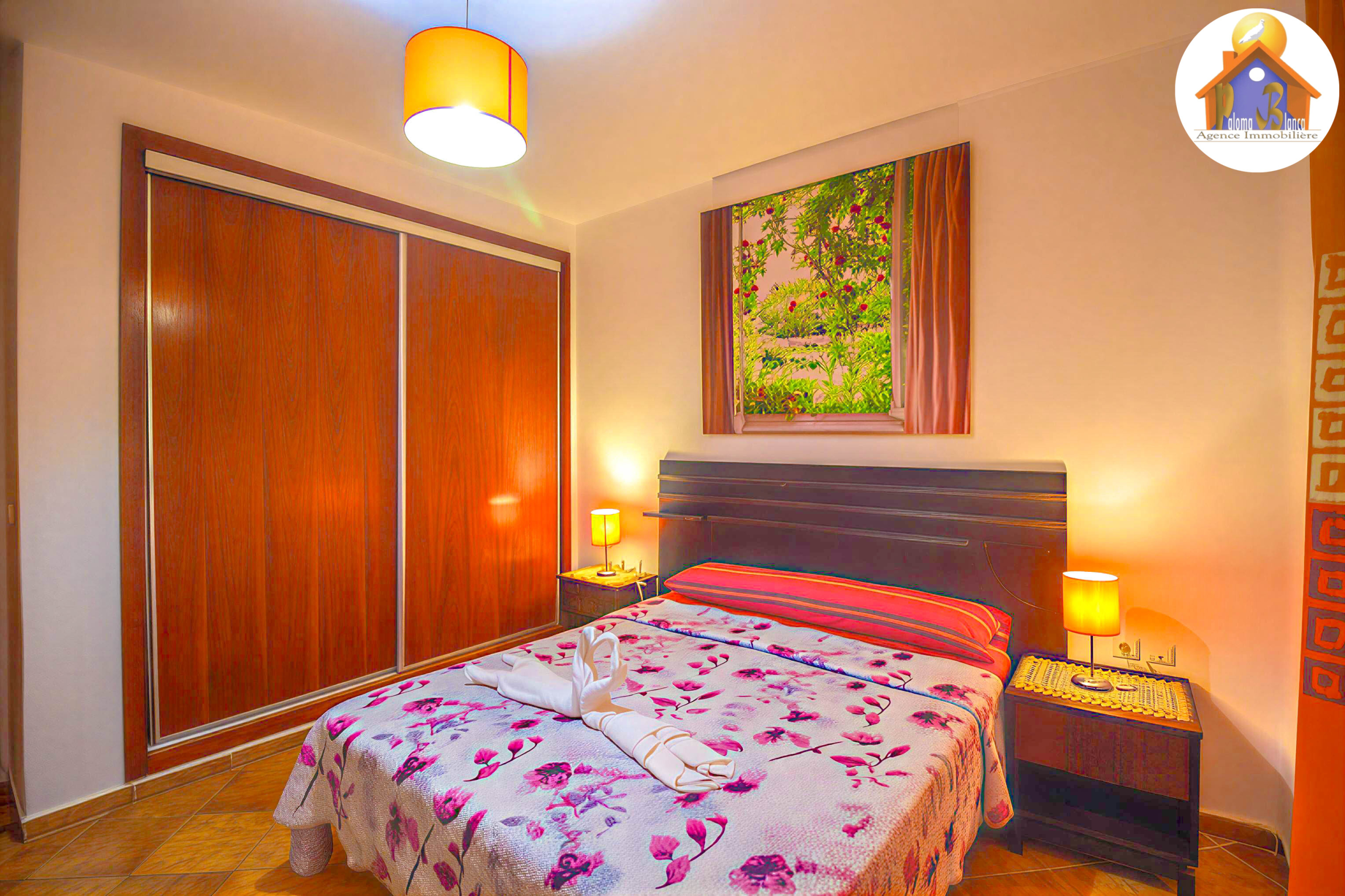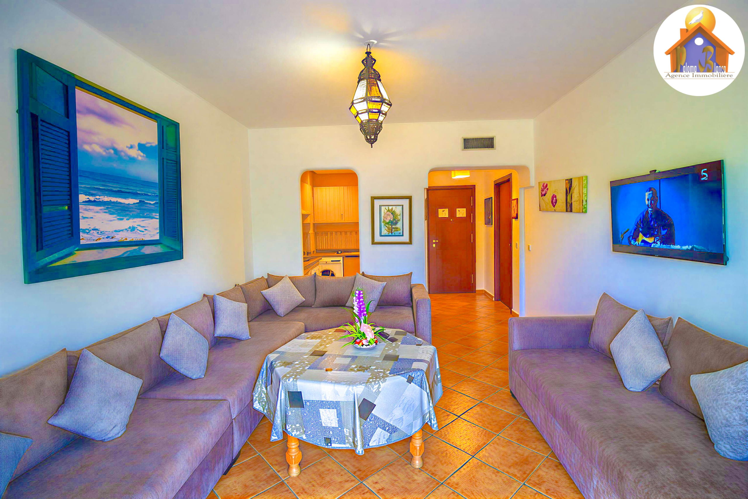 Belle appartement situé dans un complexe touristique de Haut- Standing à Cabo Negro , le complexe se caractérise par 2 grandes piscines pour les adultes et 2 piscines pour les petits , jeux pour les enfants et animation aussi wifi, il est près d’un centre commercial qui contient : café , restaurants , pharmacie , banque , super marché , parking , sécurité et notre agence sur le centre commerciale.