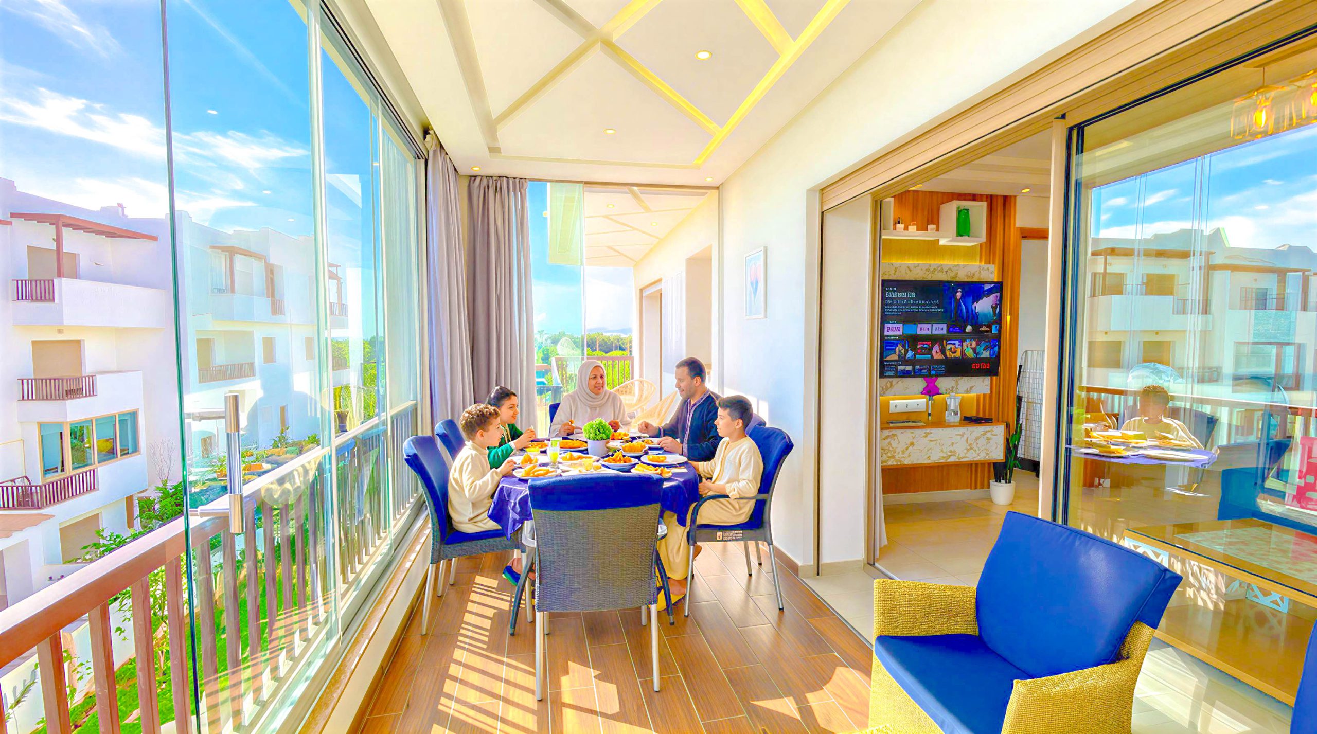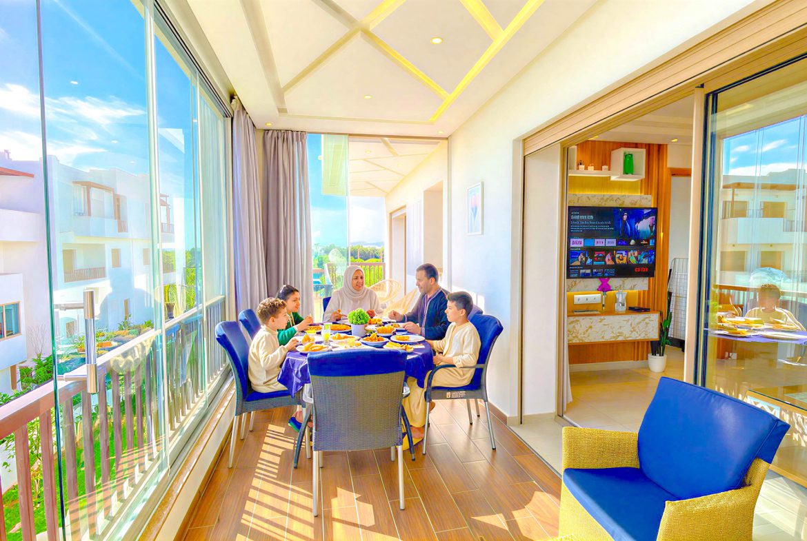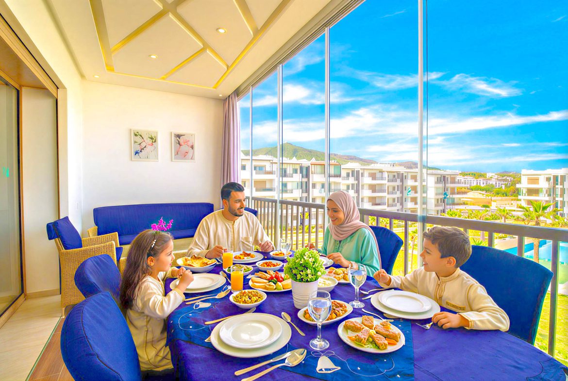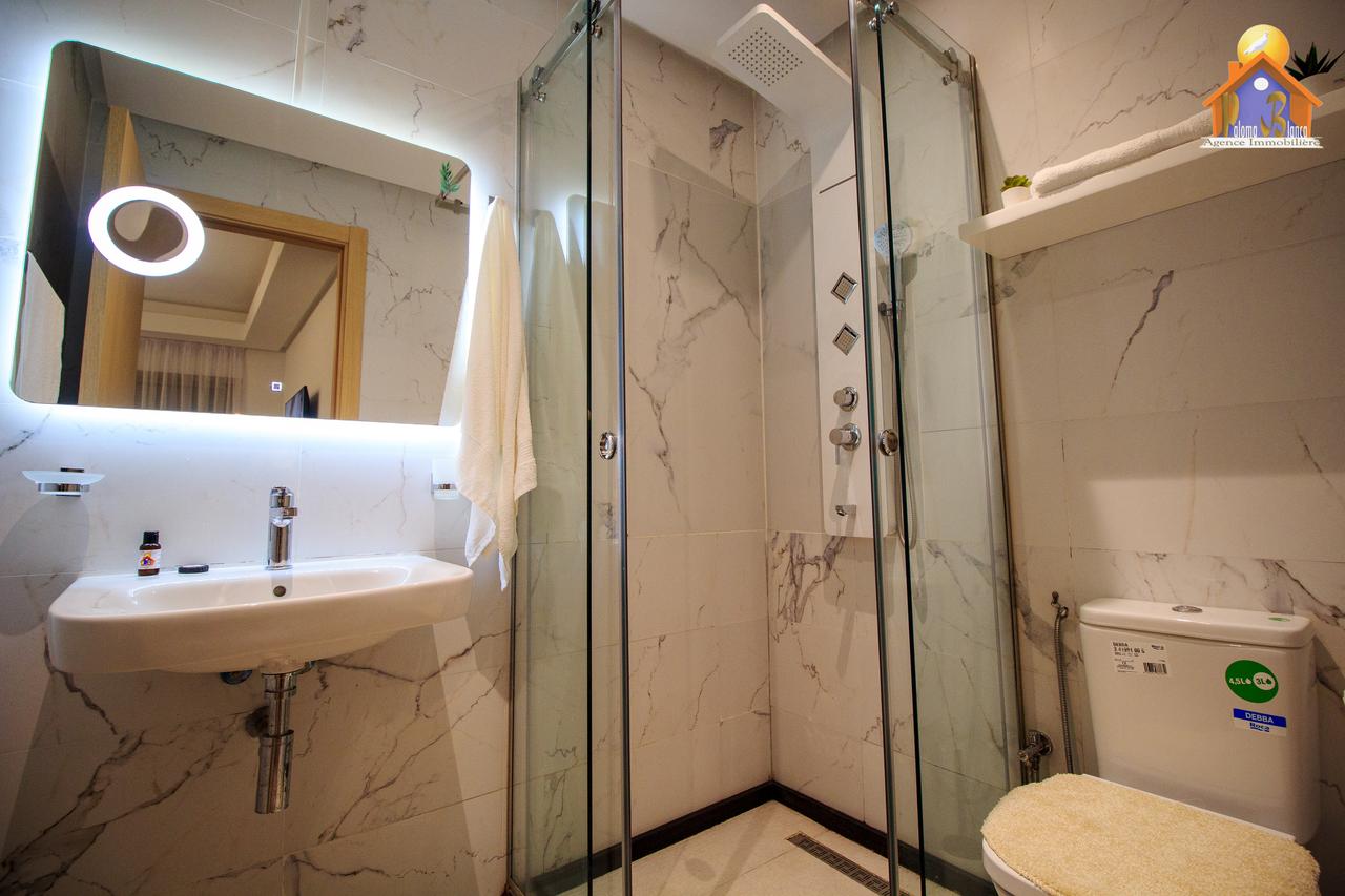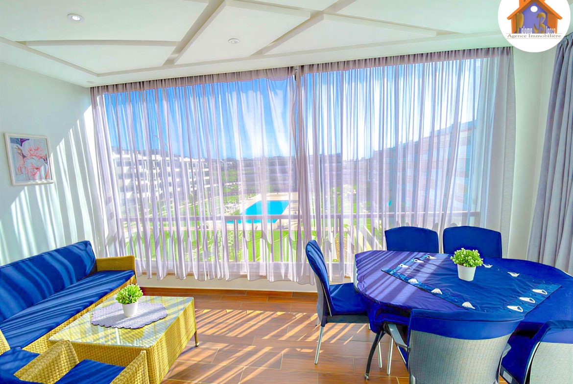 L’appartement est en deuxième étage avec ascenseur et elle se compose de : 1 Chambre à coucher , 1 Grand Salon , 2 Salle de bain , Cuisine bien équipée et une terrasse avec vue panoramique sur piscine.