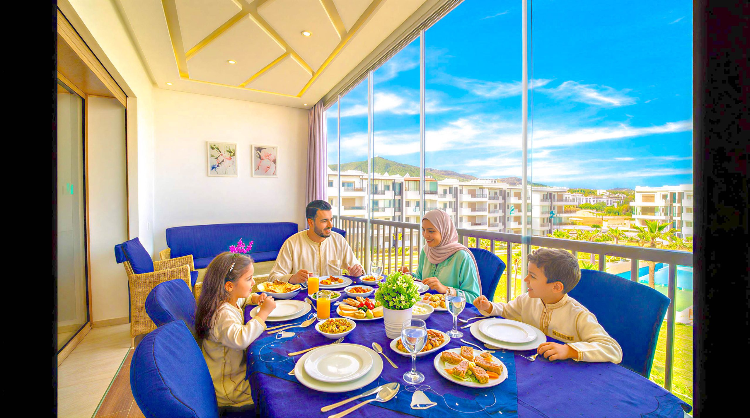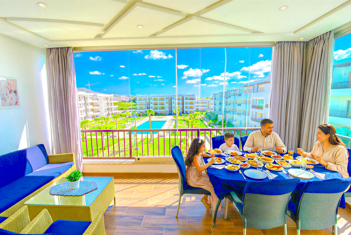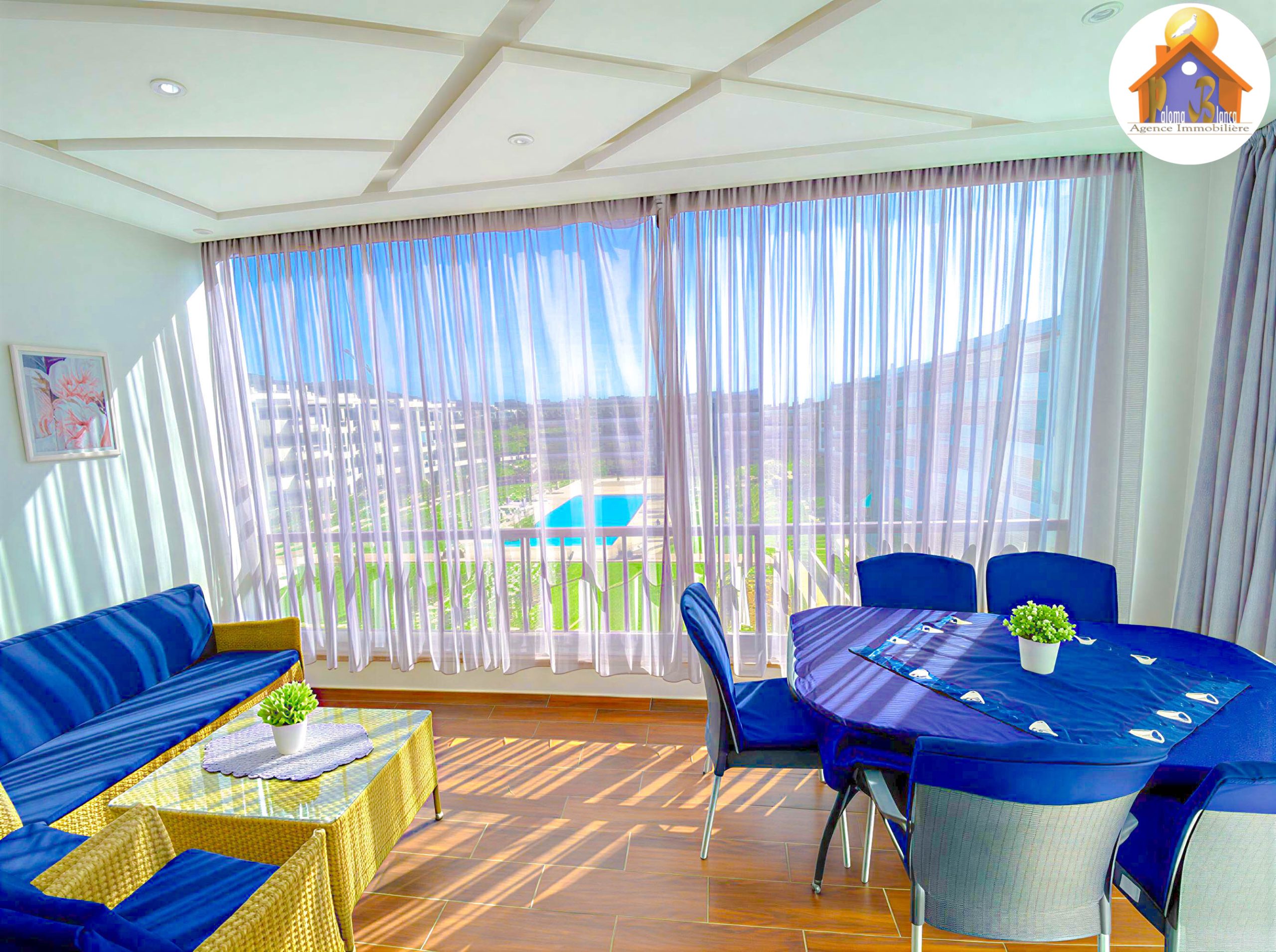 Un appartement meublé avec goût et se trouve dans une résidence de Haut – Standing à Cabo Negro ( cabo huerto ), il se caractérise par 2 grandes piscines pour les adultes et pour les enfants , jeux pour les enfants , animation , parking , sécurité