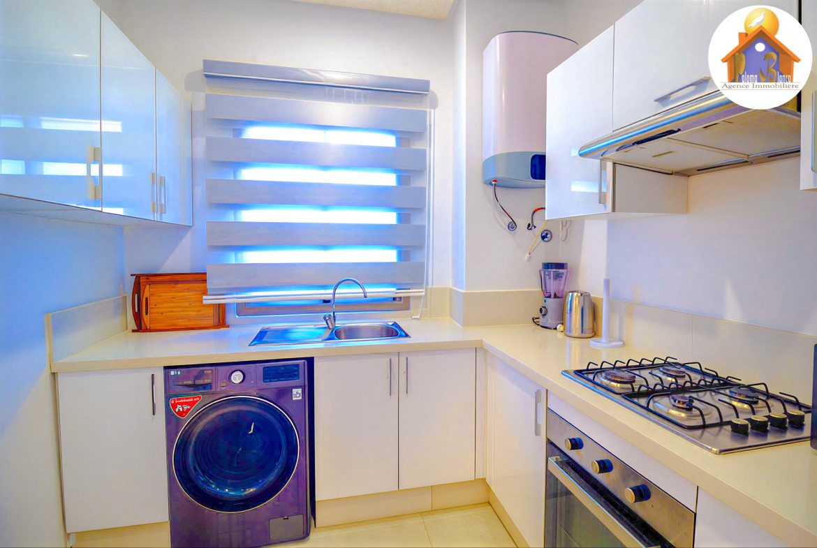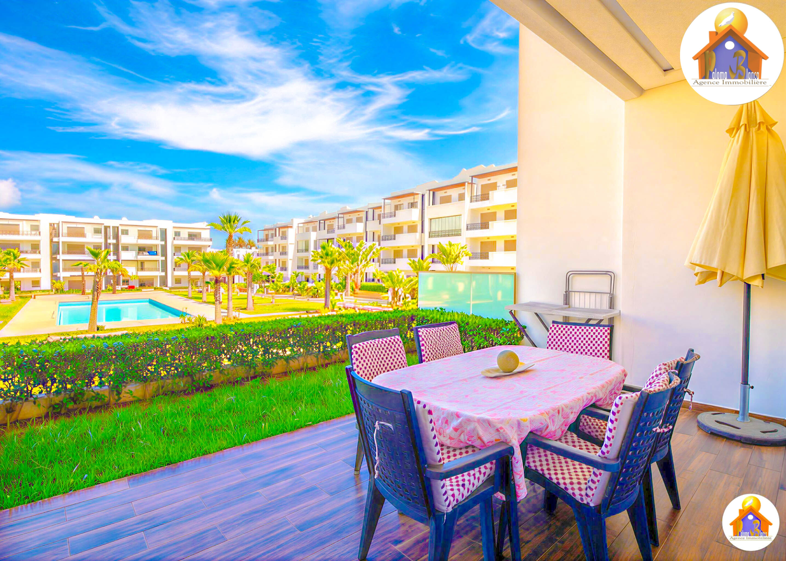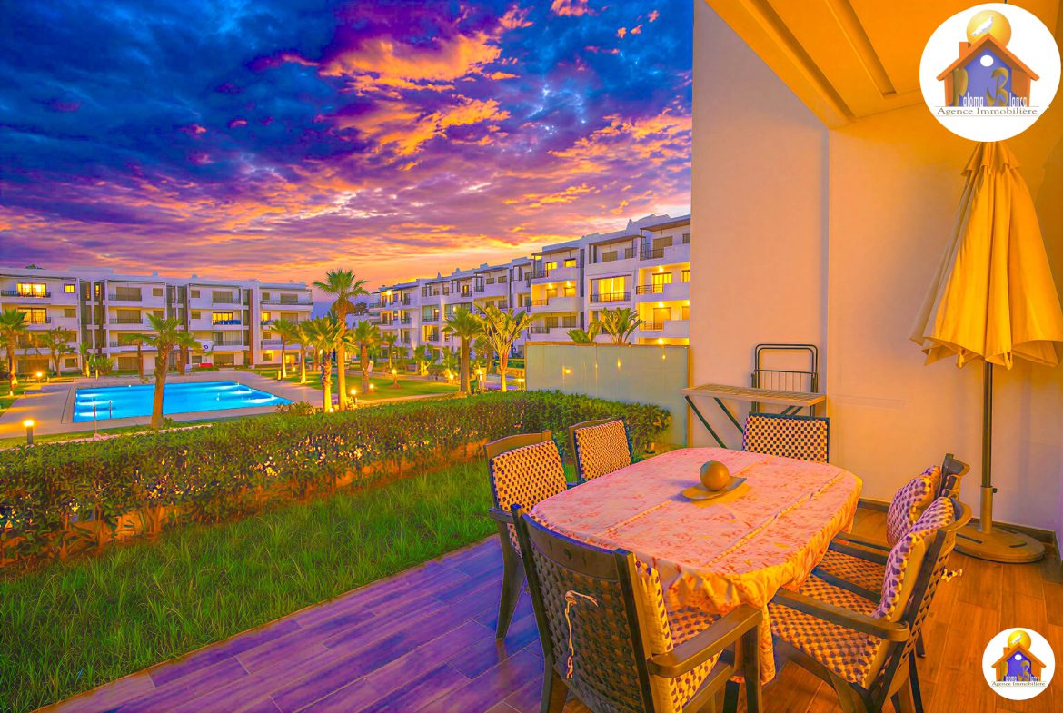 Un appartement meublé avec goût et se trouve dans une résidence de Haut – Standing  à Cabo Negro ( cabo huerto ), il se caractérise par 2 grandes piscines pour les adultes et pour les enfants , jeux pour les enfants , animation , parking , sécurité