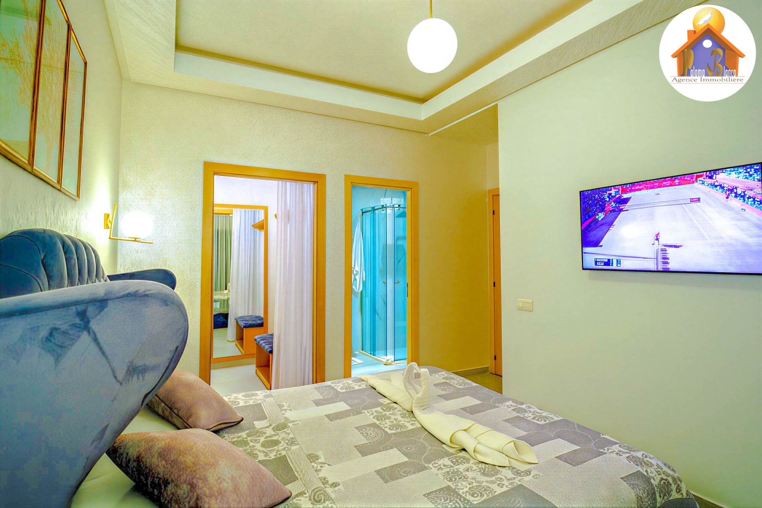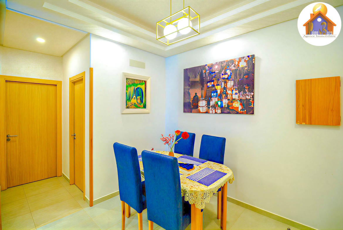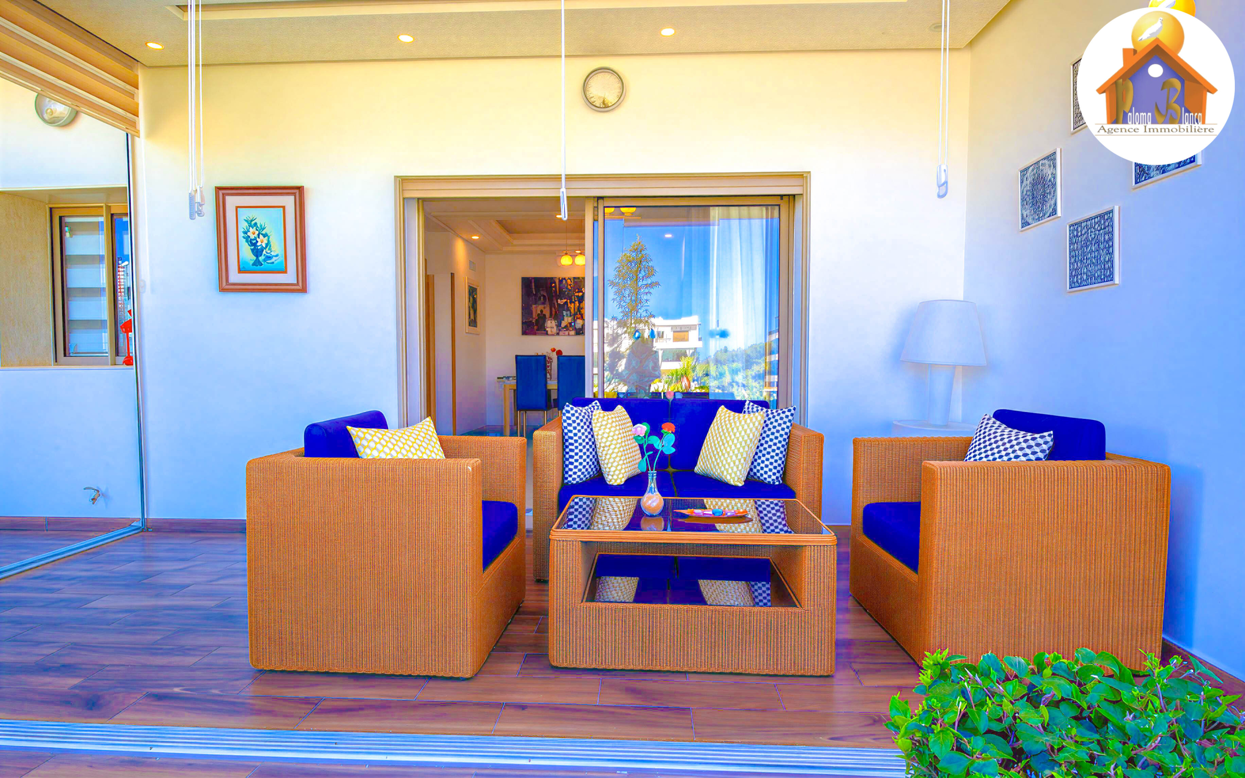 Un appartement meublé avec goût et se trouve dans une résidence de Haut – Standing  à Cabo Negro ( cabo huerto ), il se caractérise par 2 grandes piscines pour les adultes et pour les enfants , jeux pour les enfants , animation , parking , sécurité